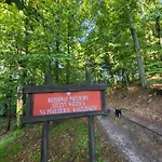 The 1-bedroom Jaskowe Wzgorze Domki Na Wynajem, Balia, Szymbark Domek Nr 1 Villa is nestled within 20 minutes' walk of Wiezyca Mountain and provides a Jacuzzi. Featuring access to a sunny patio, this Szymbark villa is located a 20-minute stroll from Upside Down House.